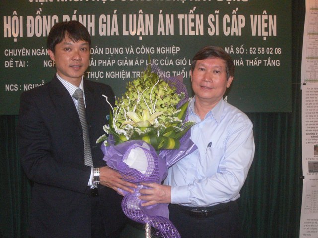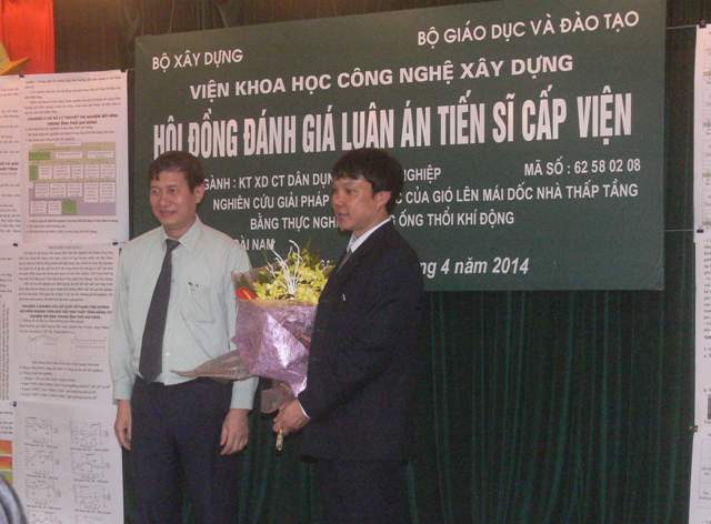 Thực hiện Quyết định số 197/QĐ-VKH ngày 27/2/2014 của Viện trưởng Viện KHCN Xây dựng, sáng ngày 10 tháng 4 năm 2014, Viện KHCN Xây dựng đã tổ chức Hội đồng đánh giá luận án tiến sĩ cấp Viện cho NCS. Nguyễn Hoài Nam, với đề tài: " Nghiên cứu giải pháp giảm áp lực của gió lên mái dốc nhà thấp tầng bằng thực nghiệm trong ống thổi khí động", chuyên ngành: Kỹ thuật xây dựng công trình dân dụng và công nghiệp, mã số: 62.58.02.08.
