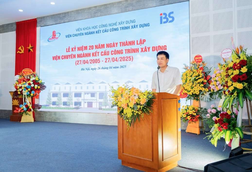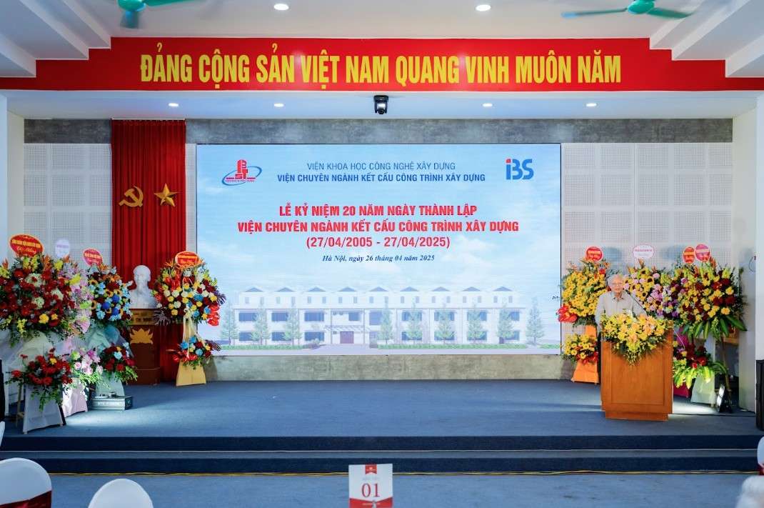 Chiều ngày 26/4/2025, được sự nhất trí của Viện Khoa học công nghệ xây dựng, Viện Chuyên ngành Kết cấu công trình xây dựng (Viện Kết cấu) thuộc Viện Khoa học Công nghệ Xây dựng, đã long trọng tổ chức lễ Kỷ niệm 20 năm ngày thành lập (27/4/2005 - 27/4/2025).