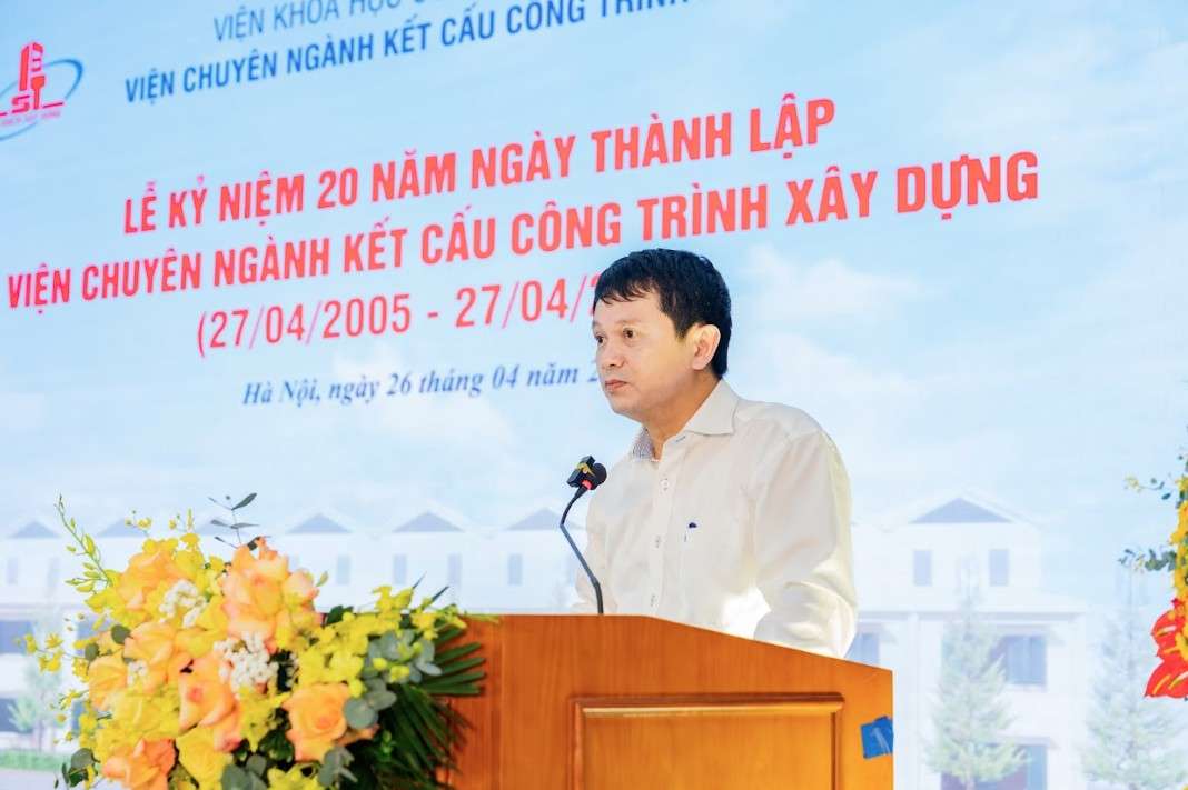 Phát biểu tại Lễ kỷ niệm, Viện trưởng Nguyễn Hồng Hải chúc mừng Viện chuyên ngành Kết cấu công trình đã trải qua 20 năm xây dựng và phát triển, là một trong những đơn vị nghiên cứu, tư vấn hàng đầu của Viện KHCN Xây dựng và ngành Xây dựng, đóng góp tích cực vào công tác phục vụ quản lý nhà nước và nghiên cứu khoa học. Các thế hệ Lãnh đạo và VCNLĐ của Viện Kết cấu đã tham gia nghiên cứu, biên soạn nhiều quy chuẩn tiêu chuẩn xây dựng quan trọng, đào tạo bồi dưỡng nâng cao trình độ cho các cán bộ, tham gia giải quyết nhiều vấn đề kỹ thuật phức tạp tại các công trình lớn và đóng góp vào sự mở rộng quan hệ hợp tác của Viện với các tổ chức khoa học lớn trong và ngoài nước. Nhân dịp này, Viện trưởng Nguyễn Hồng Hải bày tỏ sự cảm ơn các Bộ, Ban, Ngành, cơ quan Trung ương địa phương, các tổ chức đơn vị đã đồng hành, giúp đỡ Viện Kết cấu có những bước phát triển mạnh mẽ như hôm nay và mong rằng tiếp tục nhận được sự quan tâm của các Quý Ban ngành.