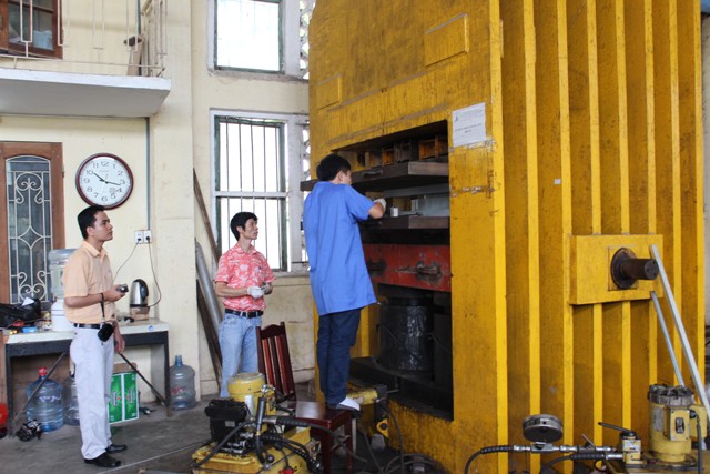 Phòng Thí nghiệm công trình - Viện Chuyên ngành Kết cấu CTXD thực hiện thí nghiệm nén gối cầu 2400 tấn Tin IBS